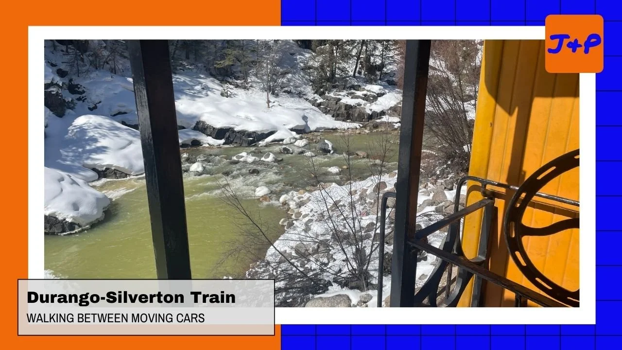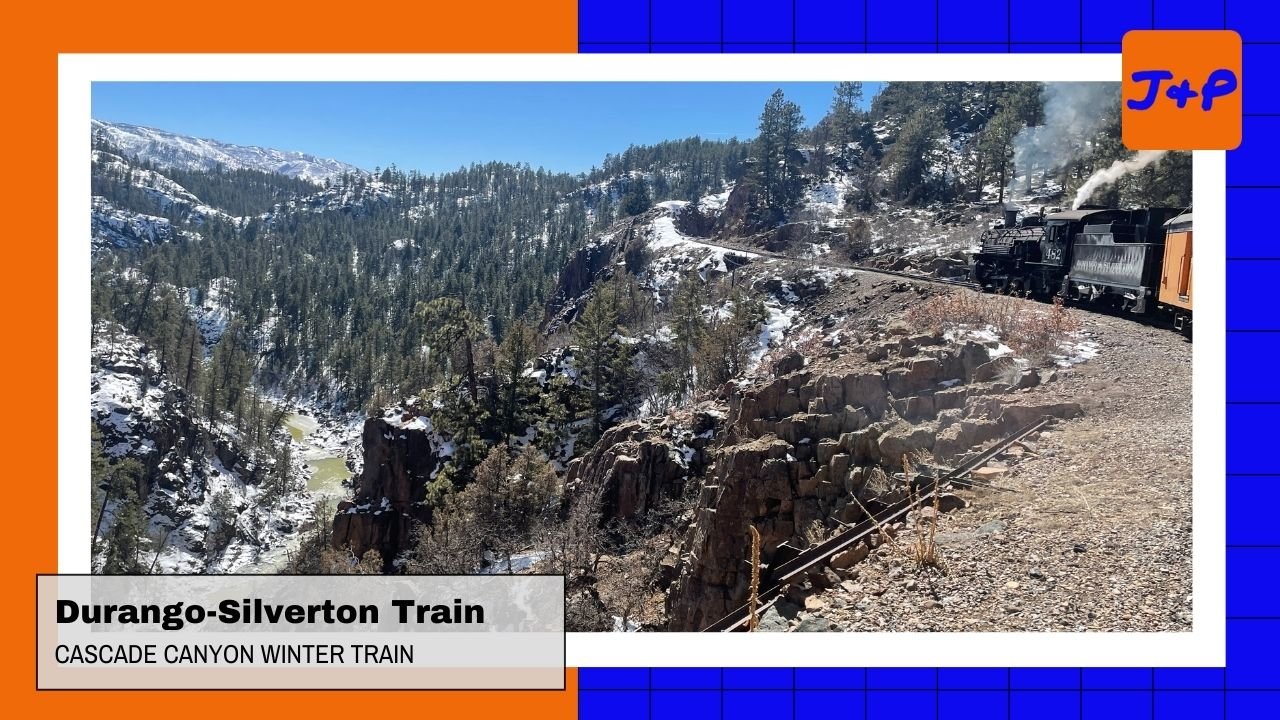 When I was a teenager, we started spending some Christmas breaks in Durango to learn skiing at Purgatory Mountain. One of my memories is going on the Durango Silverton train so I figured it would be fun to do it as an adult. Jeri also has never been on a steam train, and my dad was visiting for a few ski days so we got tickets for us to go on the Cascade Canyon Express steam train. This was a five-hour roundtrip train ride (two hours up, two hours back, with an hour stop in the middle for lunch).