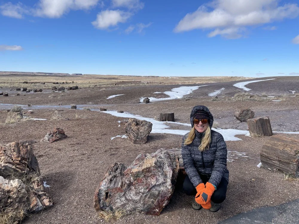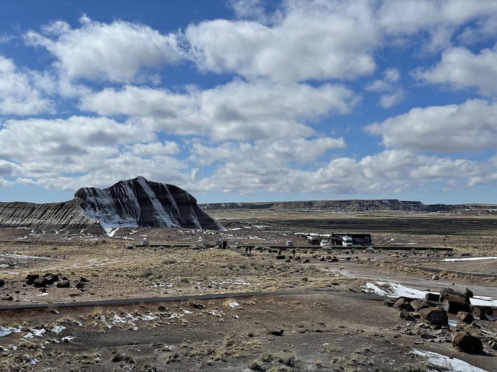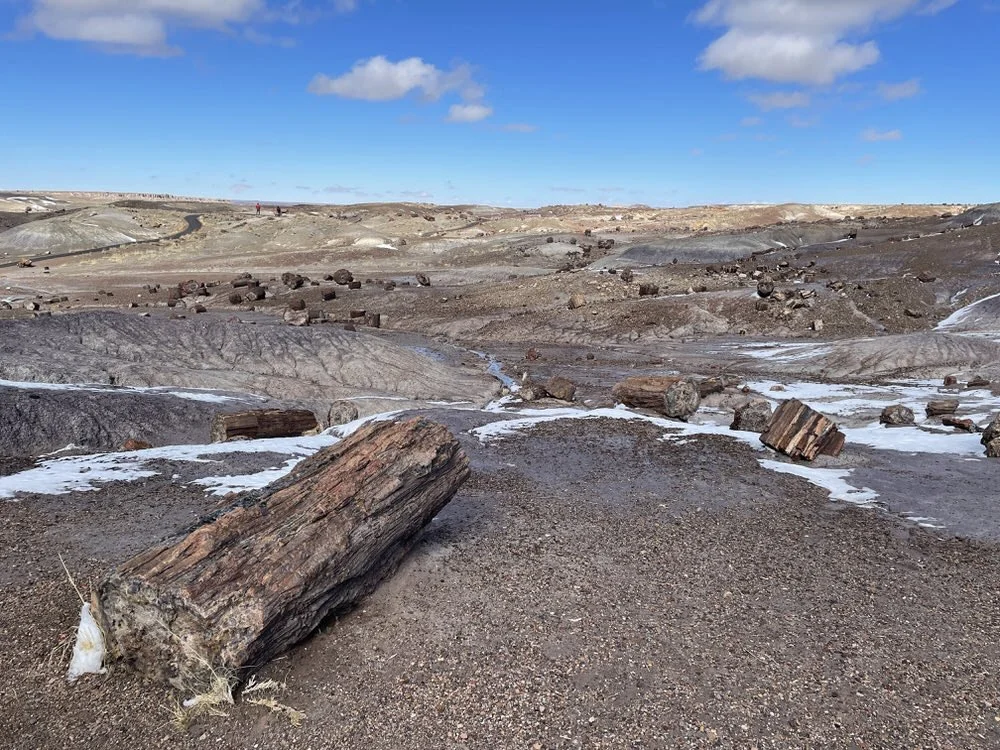 During our first year on the road we tried to visit the Petrified Forest National Park on 2/18/2019 but it snowed so much overnight that NPS never opened the park. Read about that adventure in our Boondocking Near The Petrified Forest article. Just over three years later we were ready to try again. Petrified Forest National Park take two!