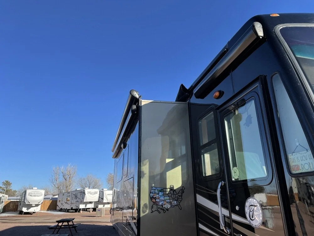 We finished our drive through the Petrified Forest and then got on the I-40 to Gallup, New Mexico. We parked at our site at the USA RV Park and started deploying our slides like we always do. This time, when the big front passenger slide went out, Penguin saw it extending more in the rear portion than the front. Before he could react there was a loud BANG, and the front caught up to the back in a fast motion that rocked the entire motorhome.