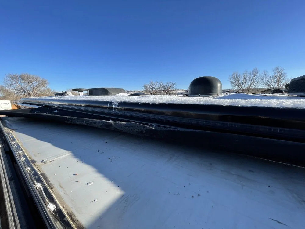 The slide went all the way out which was good, but Penguin was worried there was some sort of hydraulic problem. Upon going outside, the real issue became apparent. The slide topper roller bar had frozen or seized up during slide extension and eventually, the hydraulics overwhelmed the roller spring brake until it finally sheered that piece of aluminum clean off (the BANG!).